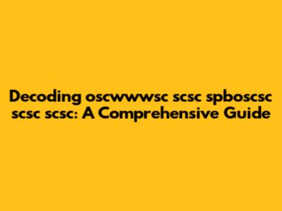 Decoding 'oscwwwsc Scsc Spboscsc Scsc Scsc': A Comprehensive Guide
