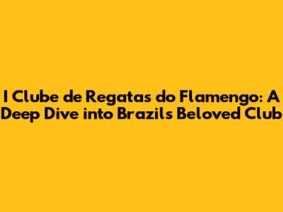 Hey guys! Let's dive deep into the heart of Brazilian football and explore one of the most iconic and beloved clubs in the world: I Clube de Regatas do Flamengo. Known simply as Flamengo, this club isn't just a football team; it's a symbol of Rio de Janeiro, a cultural institution, and a source of immense pride for millions of Brazilians. So, buckle up as we explore the history, achievements, and the undying passion that defines Flamengo!