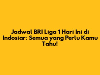 Indosiar menyiarkan sebagian besar pertandingan BRI Liga 1. Namun, ada beberapa pertandingan yang mungkin disiarkan di stasiun televisi lain atau melalui live streaming. Untuk memastikan kalian tidak ketinggalan pertandingan, selalu pantau jadwal di berbagai sumber informasi.